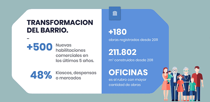 Otros establecimientos registraron incremento en la zona en los últimos nueve años, como es el caso de las heladerías (140%); oficinas (120%) y edificios productivos (23,7%). Así miles de vecinos viven la transformación de su distrito revitalizado y con nuevos comercios que generan oportunidades e incentivan el desarrollo.